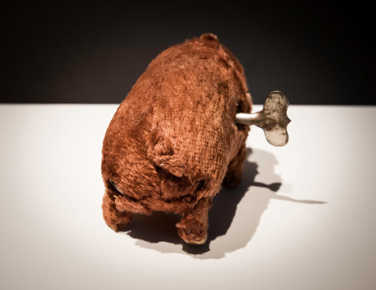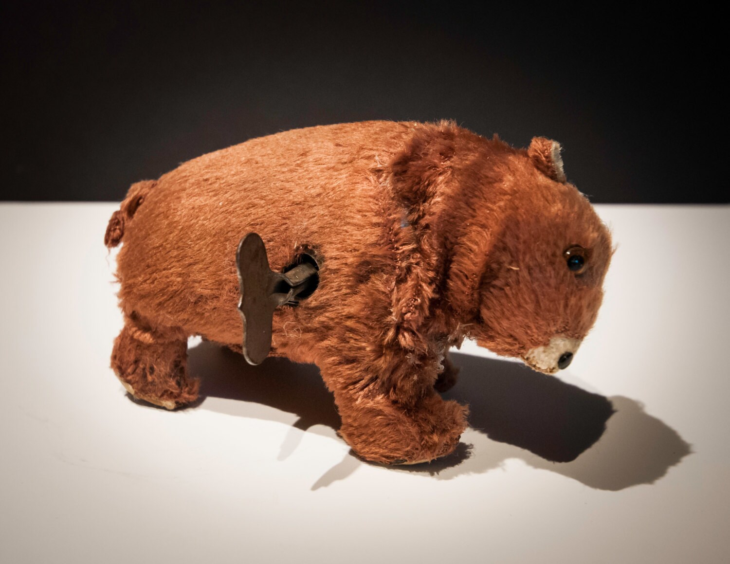 Vintage Windup Mechanical Fur Covered brown walking Bear Toy Automation from the 1940's to 1950's.