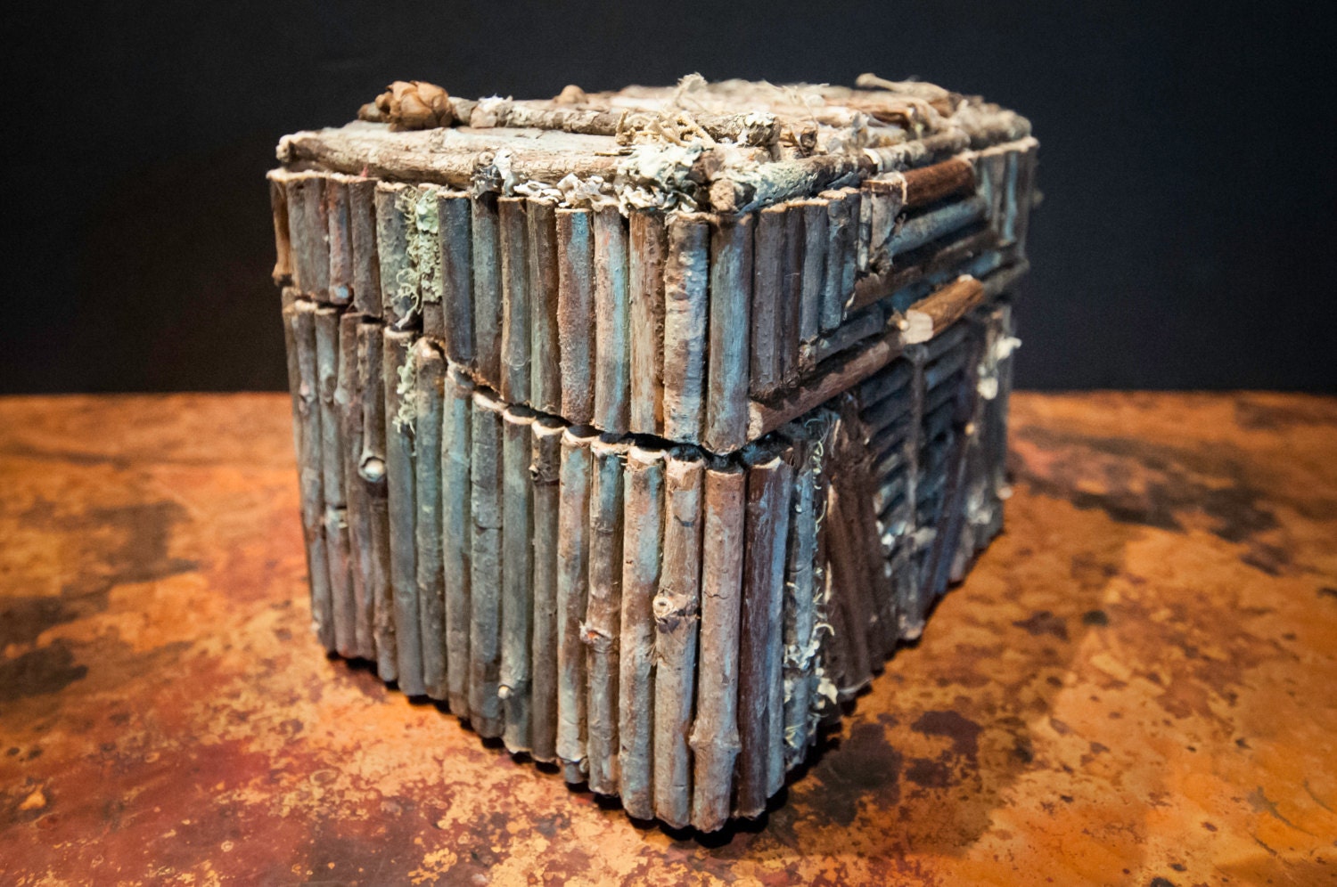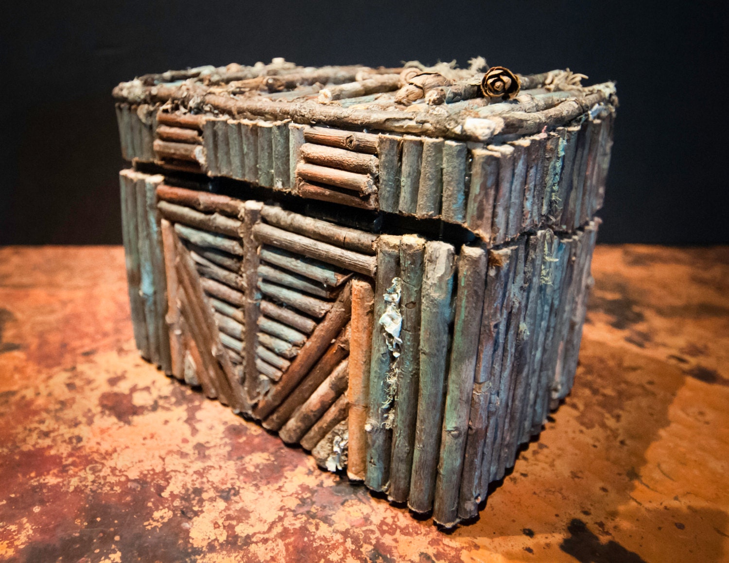 The twigs have been washed with a colored stain to give the box a rich and primitive patina.