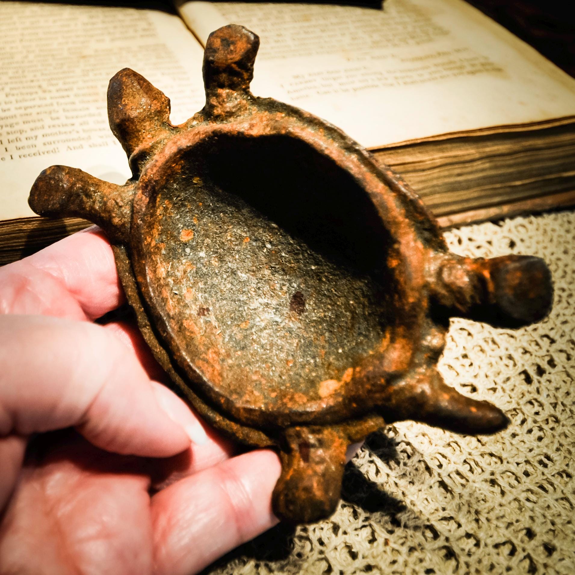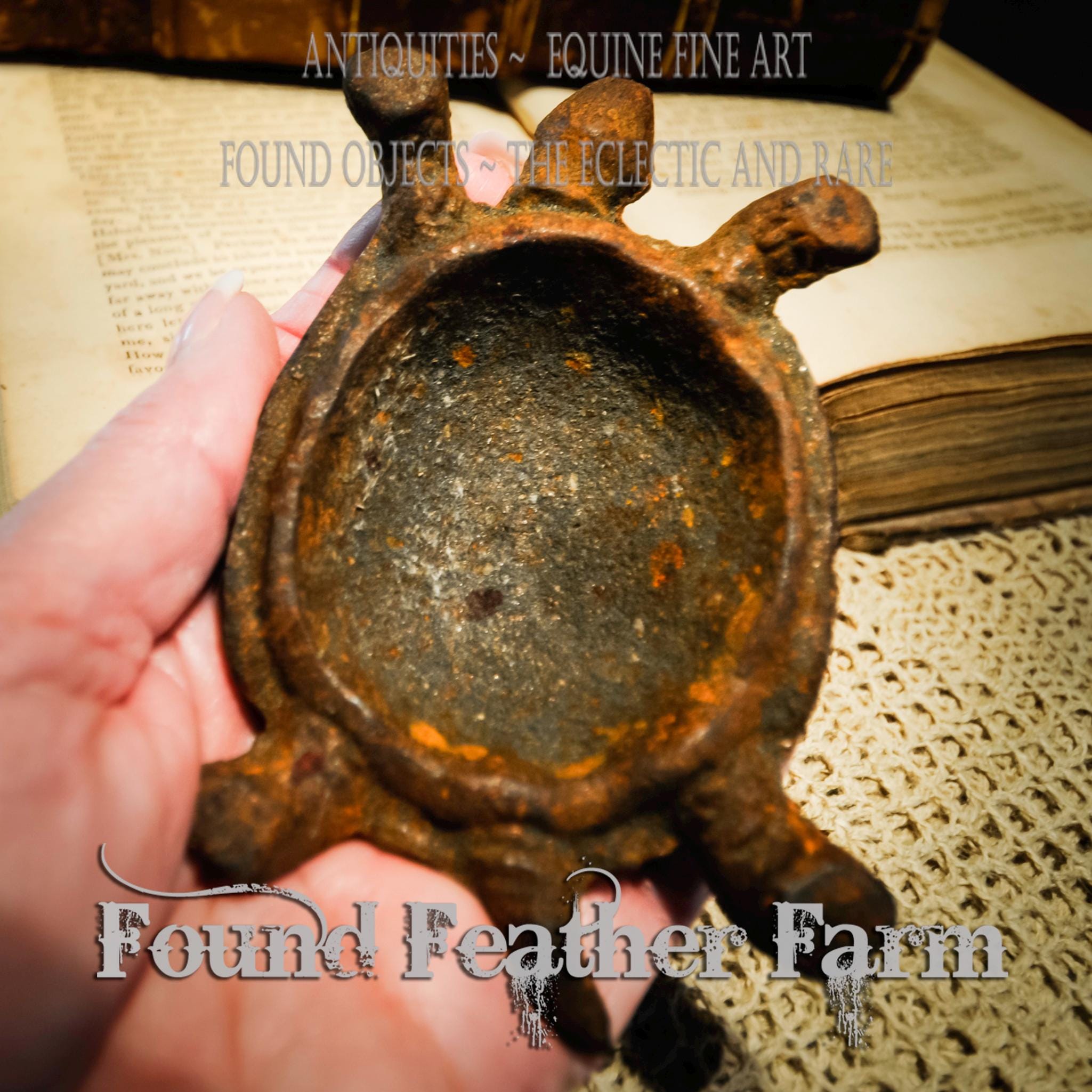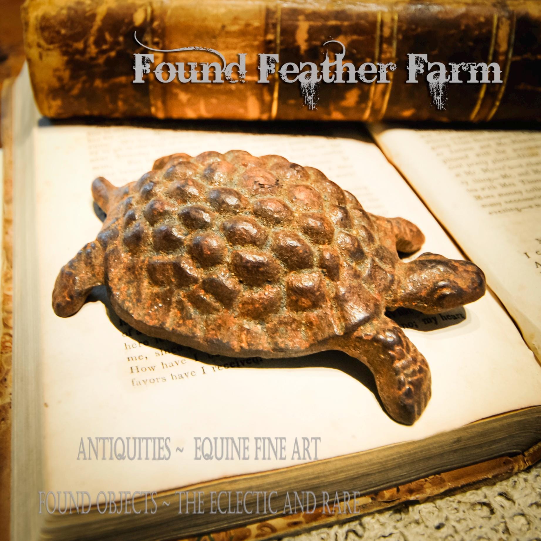 A whimsical antique cast iron Turtle statue paperweight. Rusted and very textured, this whimsical little guy is full of fun for the garden or a desk top. A great find and one that will sure to delight.