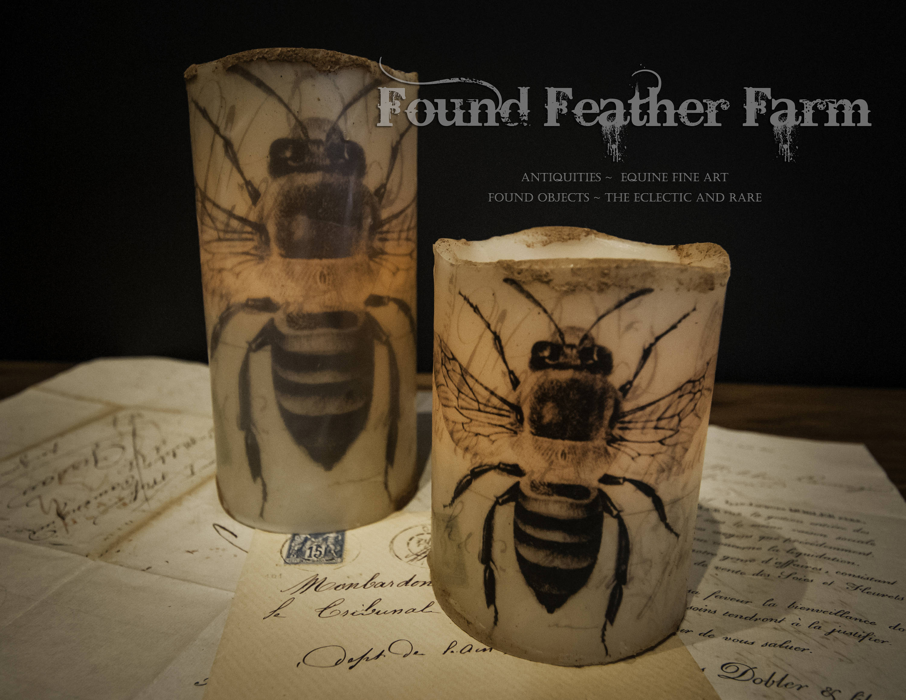 A whimsical handmade 6 inch wax candle with a printed bumble on it's side. This is a warm and glowing candle with a timer that