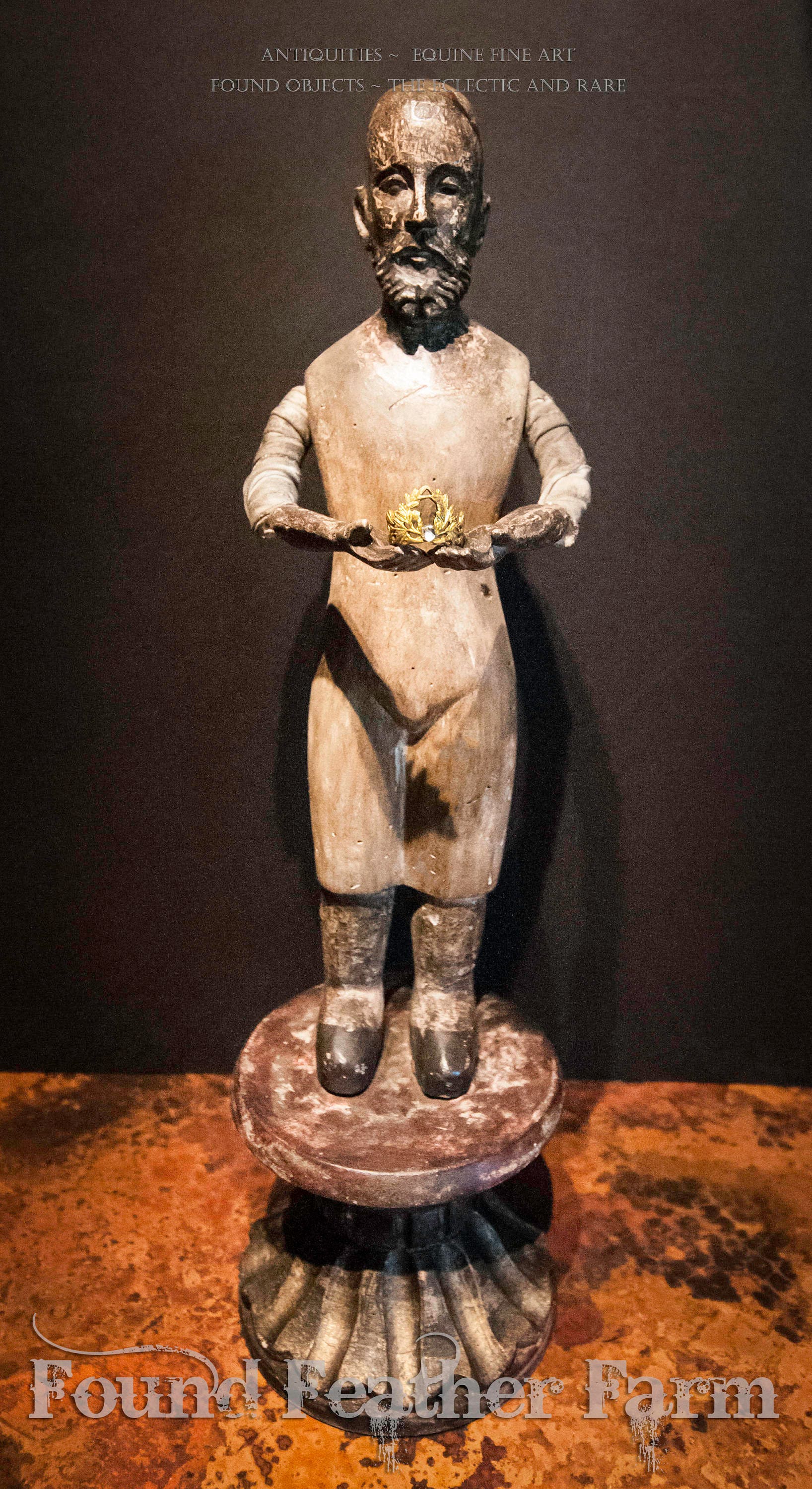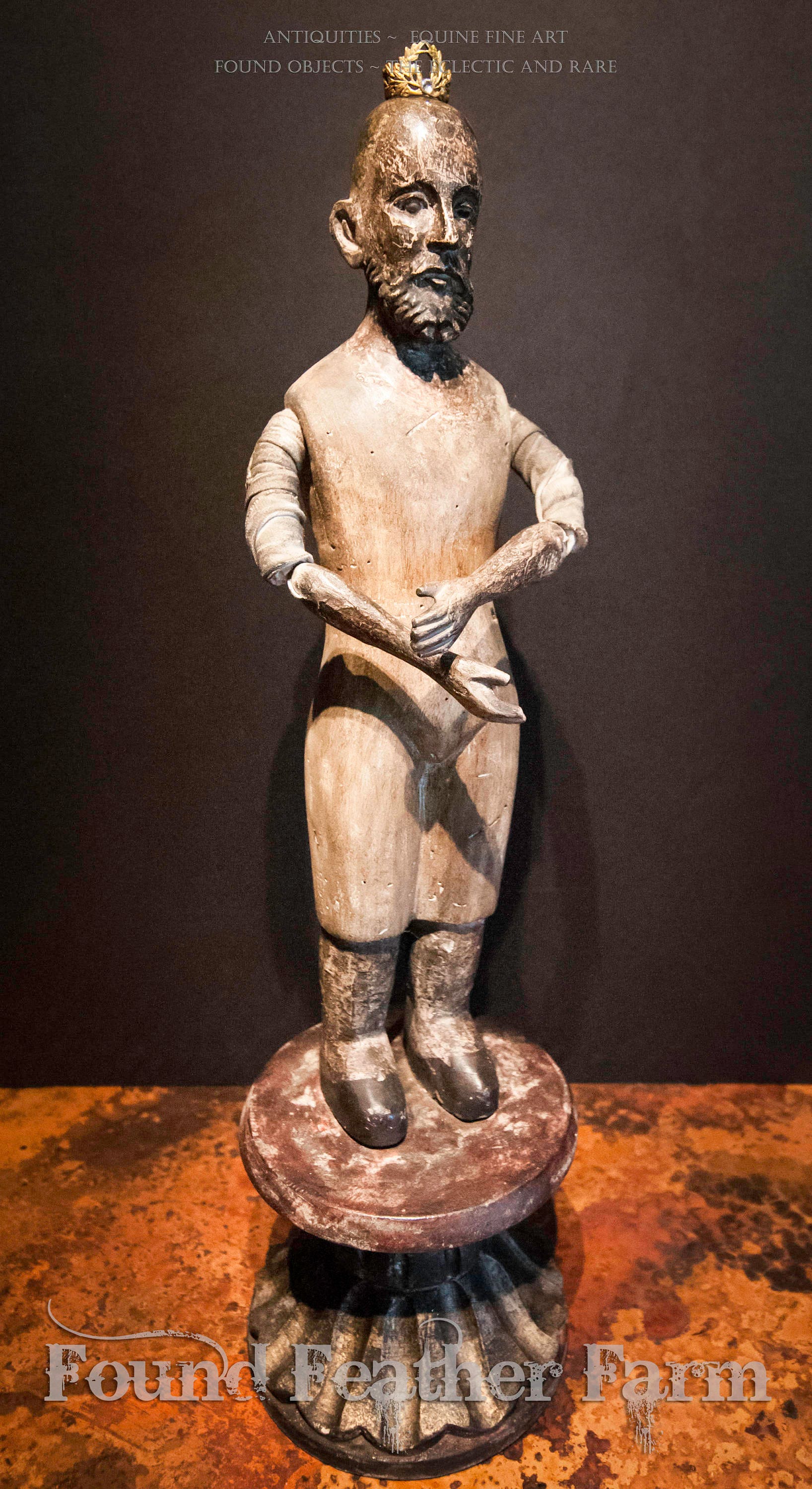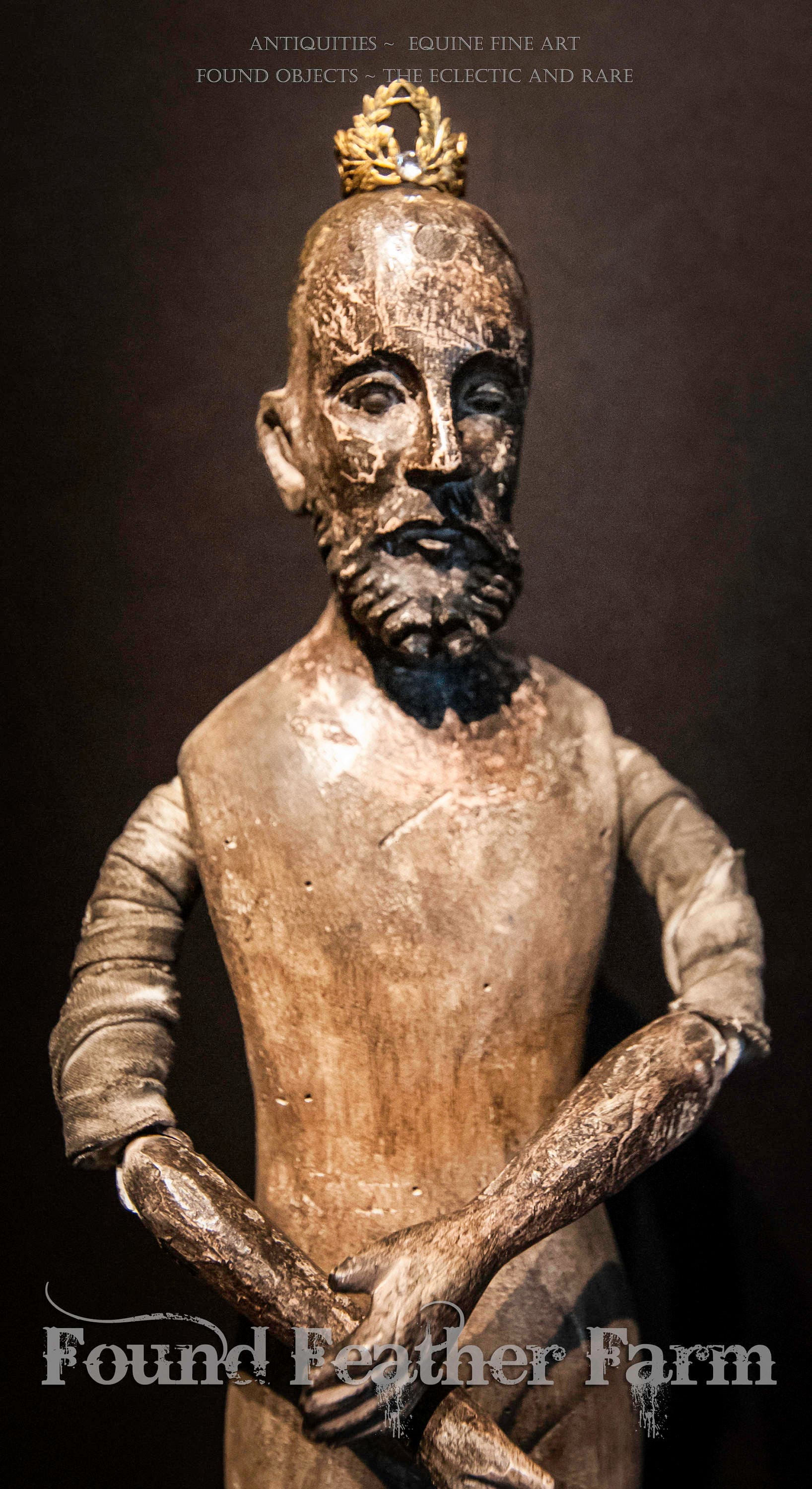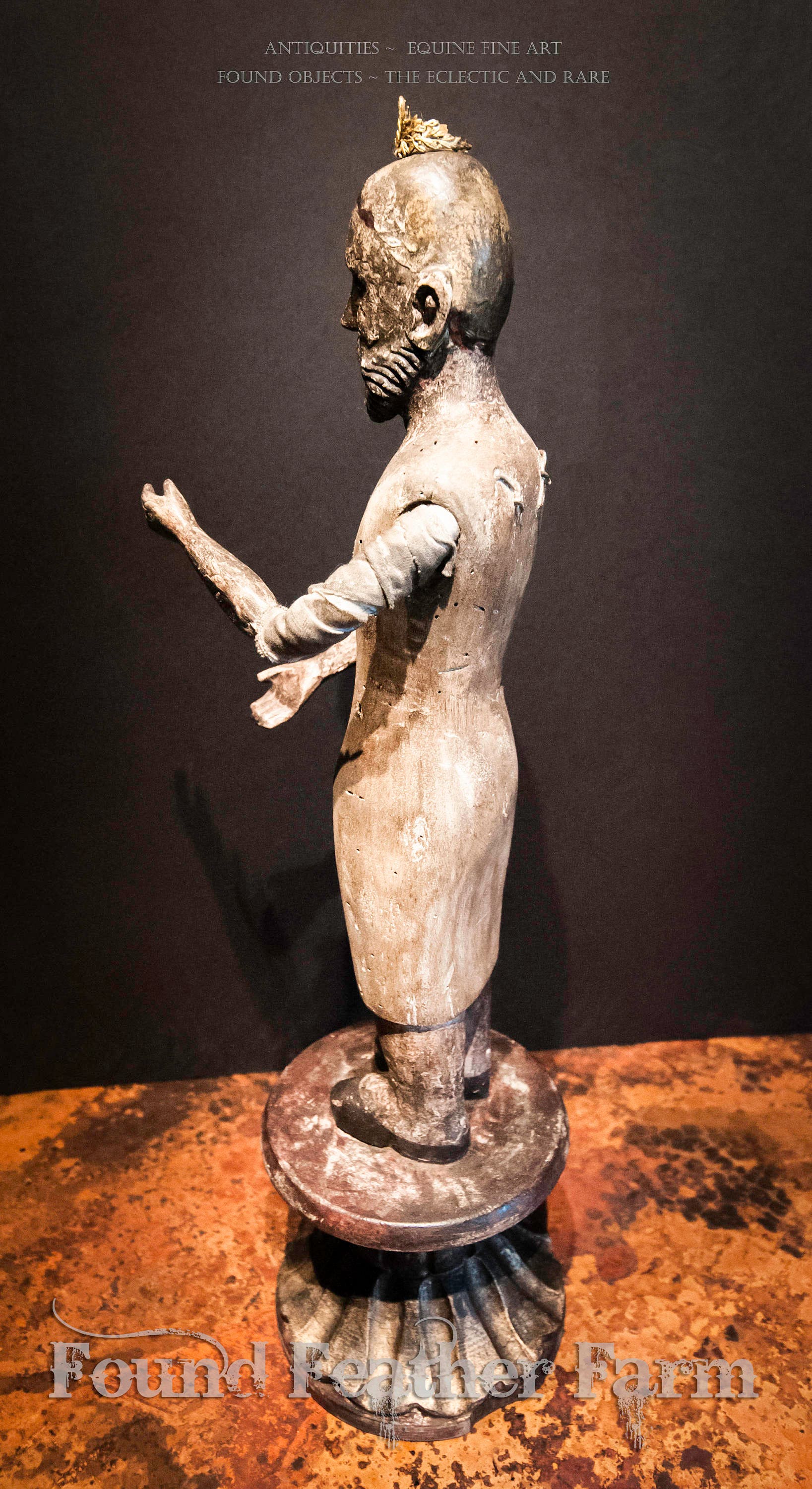 A magnificent vintage handmade carved Santos carrying a guilded jeweled crown. This Santos has wrapped flexible arms and can be