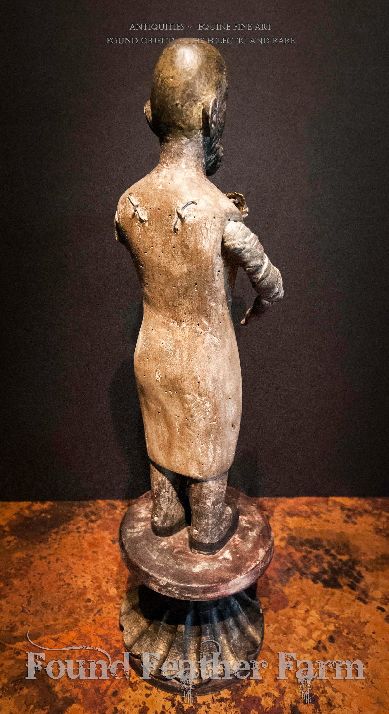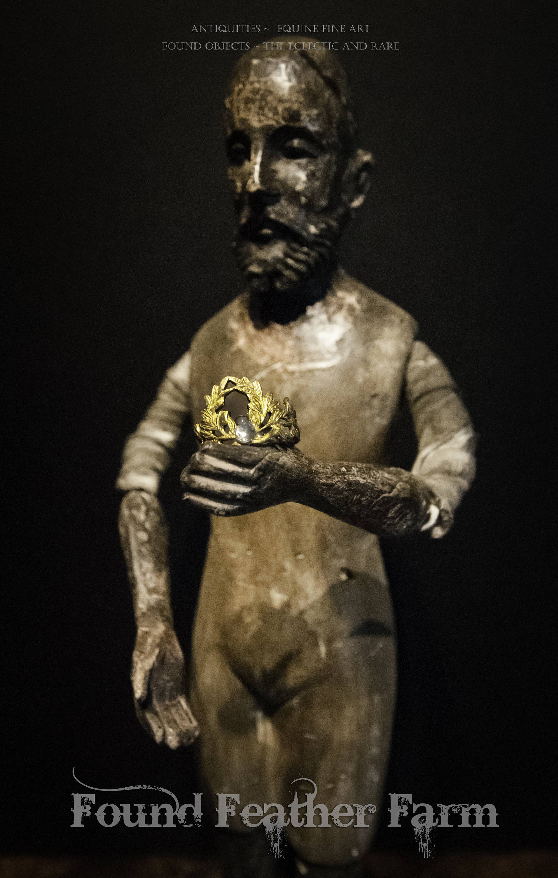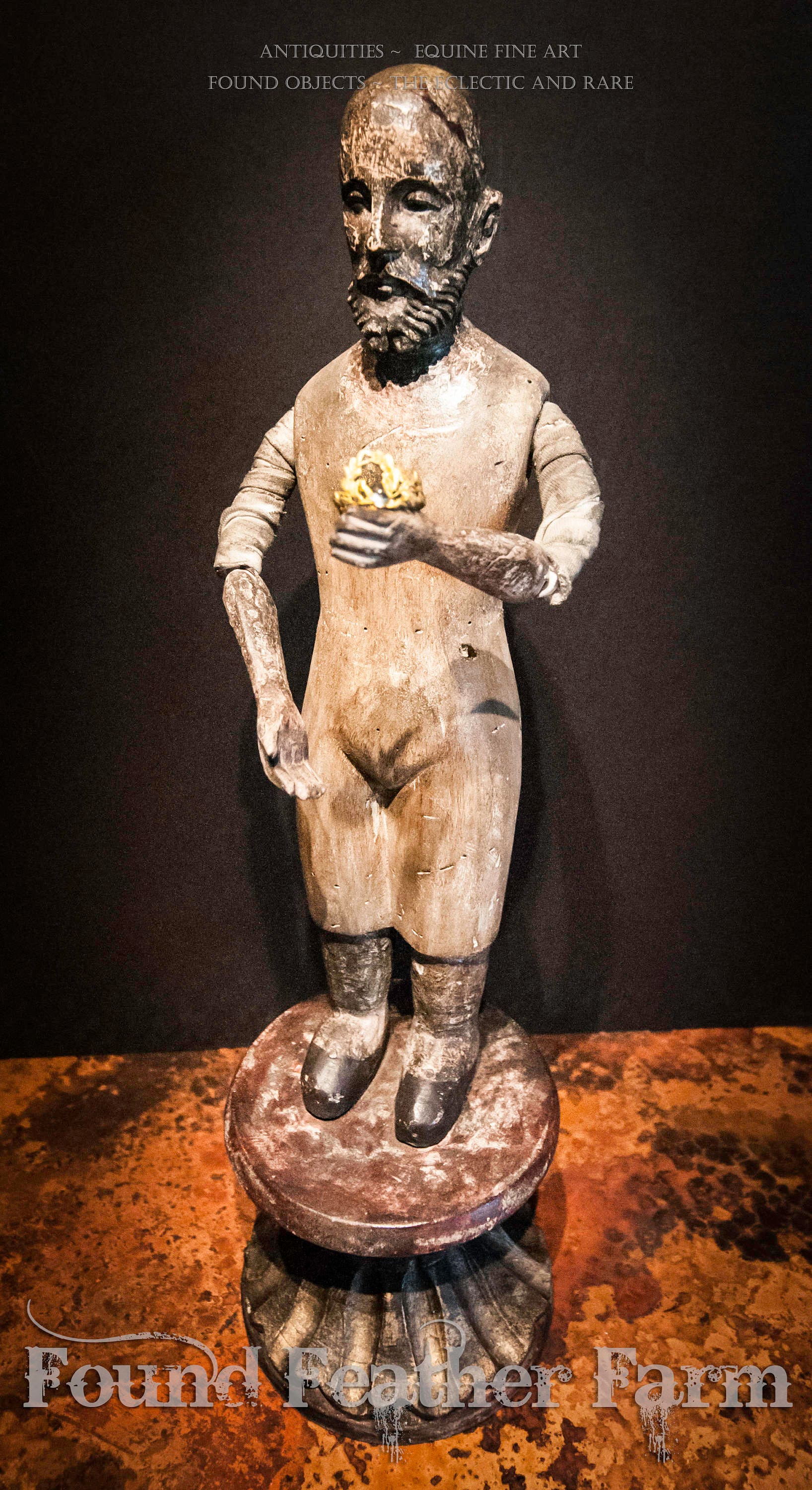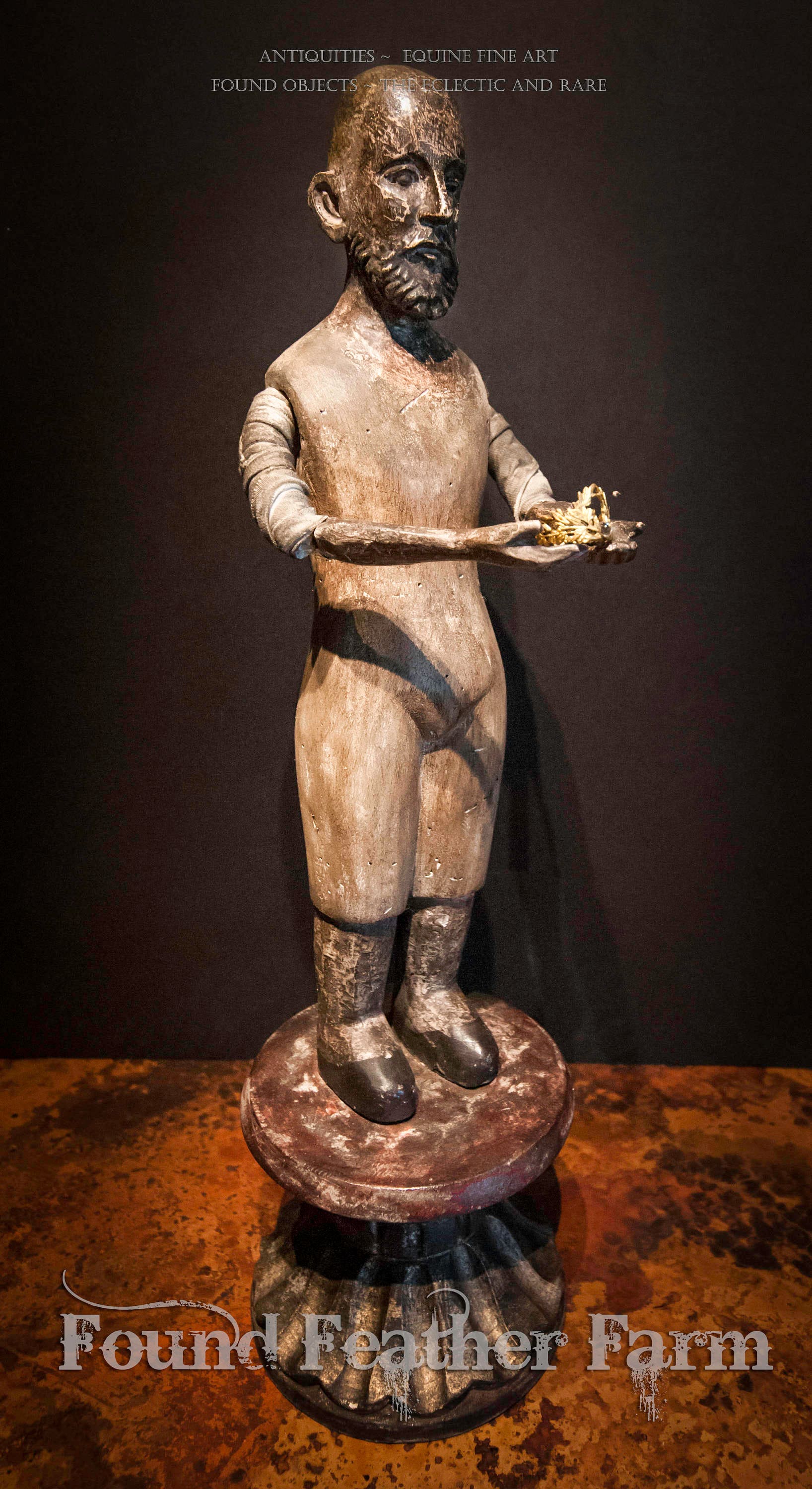 A magnificent vintage handmade carved Santos carrying a guilded jeweled crown. This Santos has wrapped flexible arms and can be