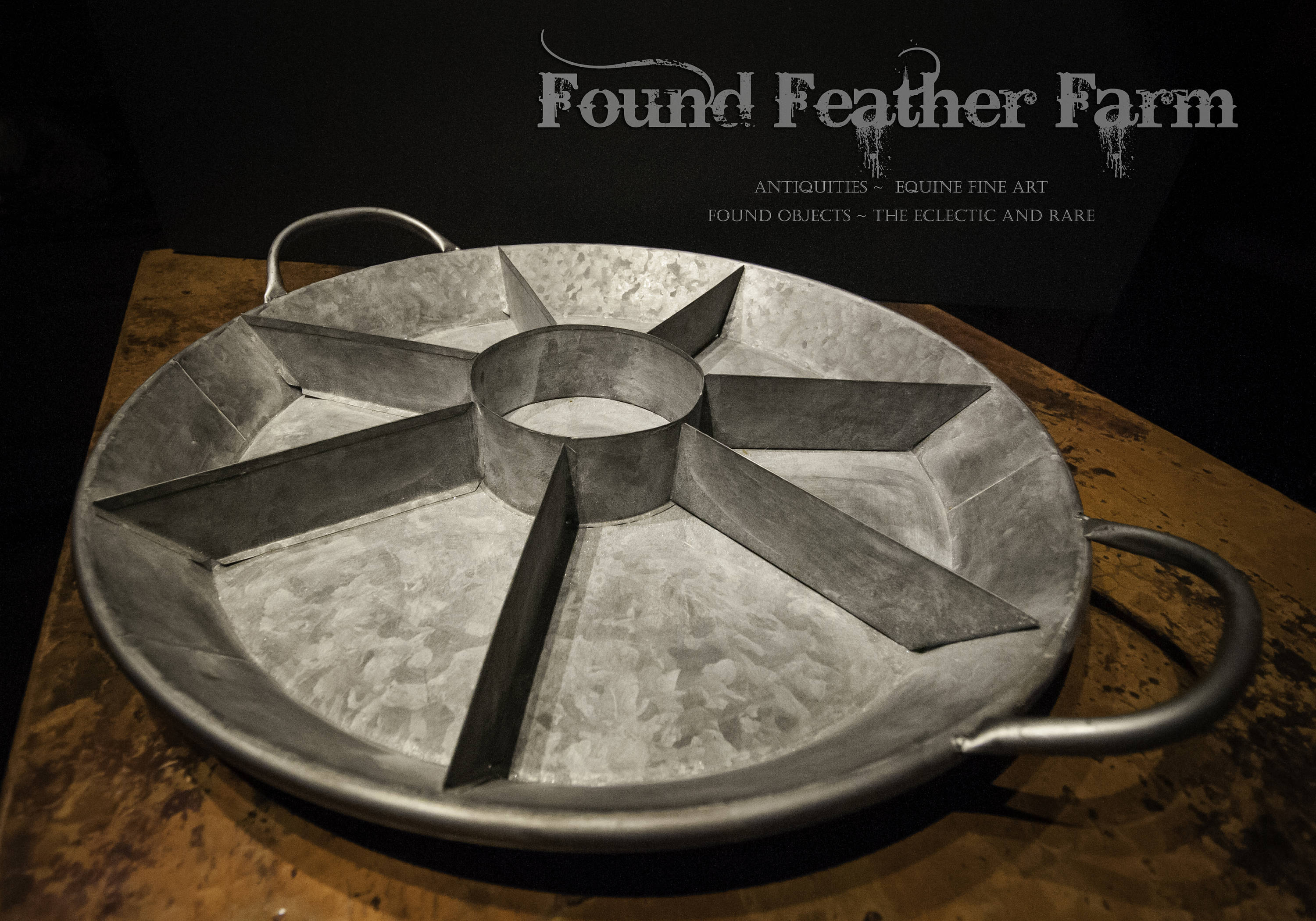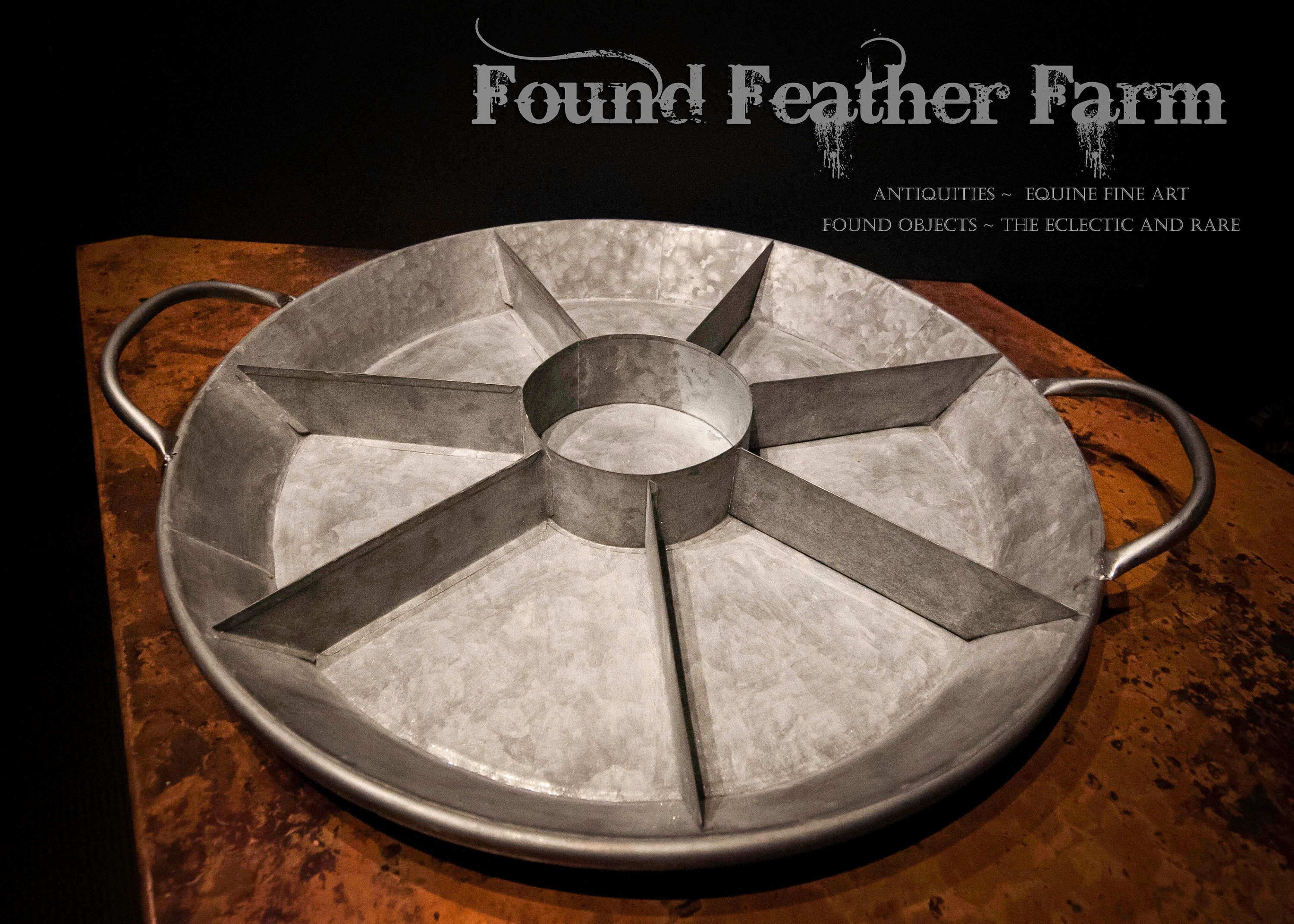 The perfect vintage round galvanized tin tray. This round tray has sturdy handles and is divided into