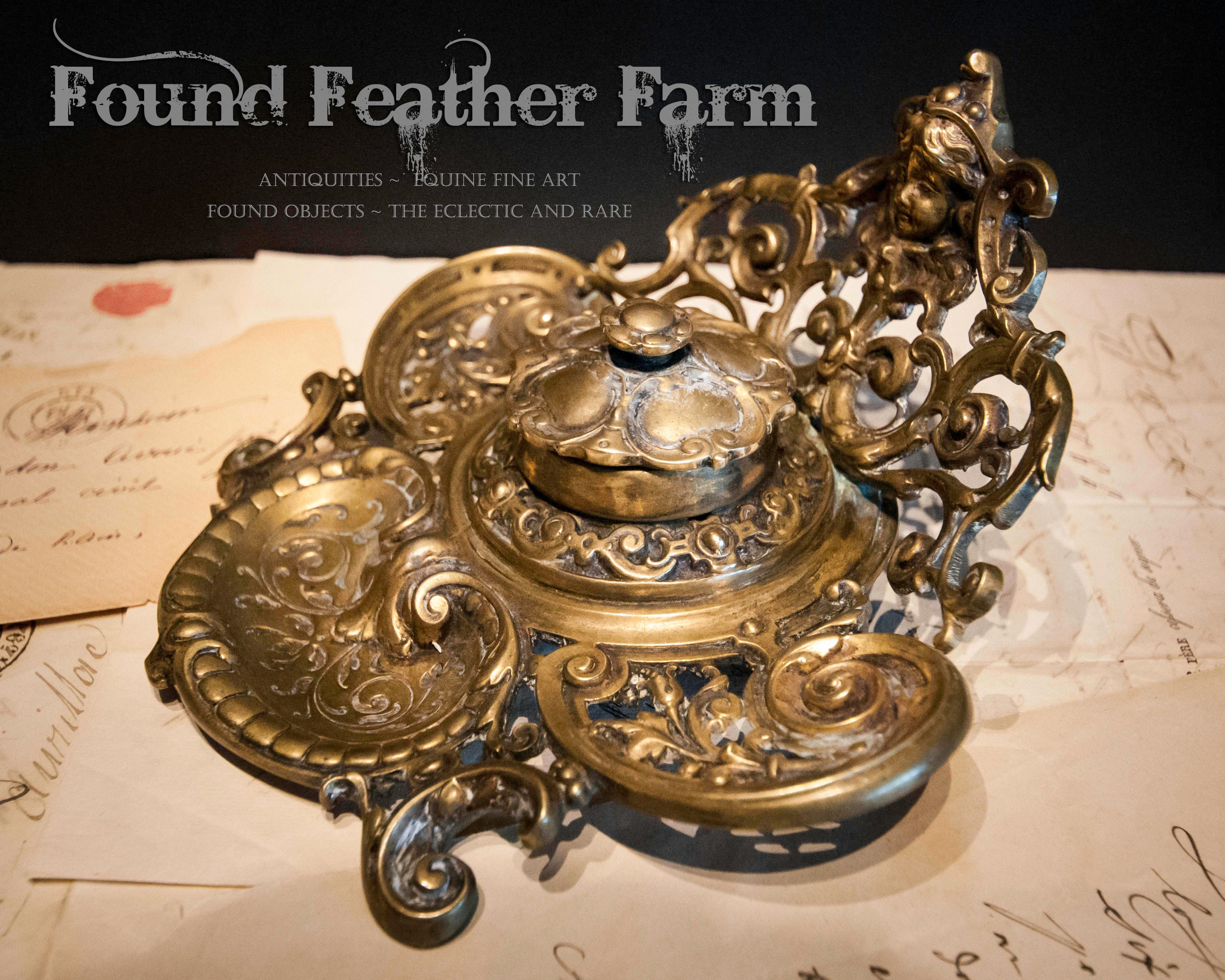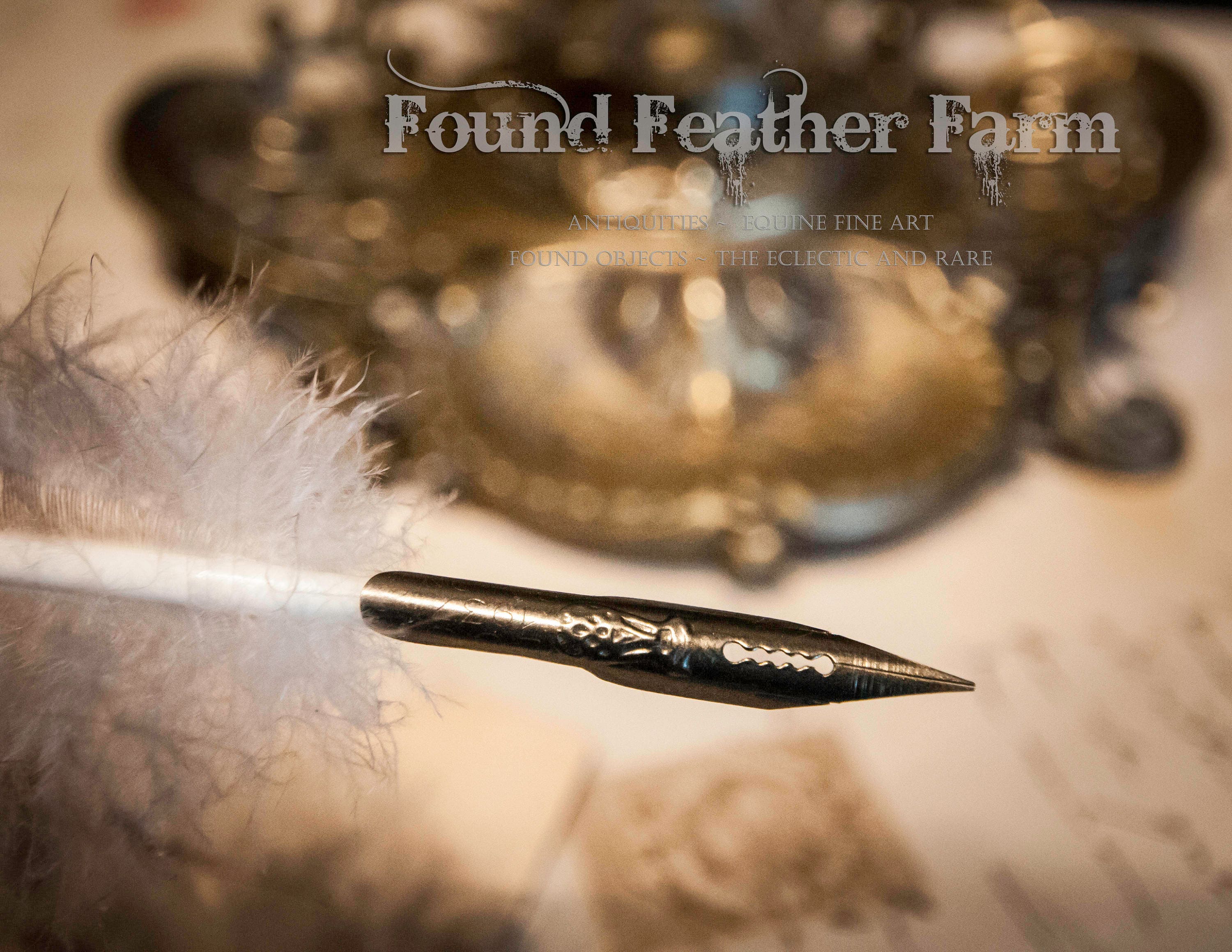 original porcelain ink pot still in place. We have paired it with a magnificent turkey feather and an antique Italian writing point nib from 1937.