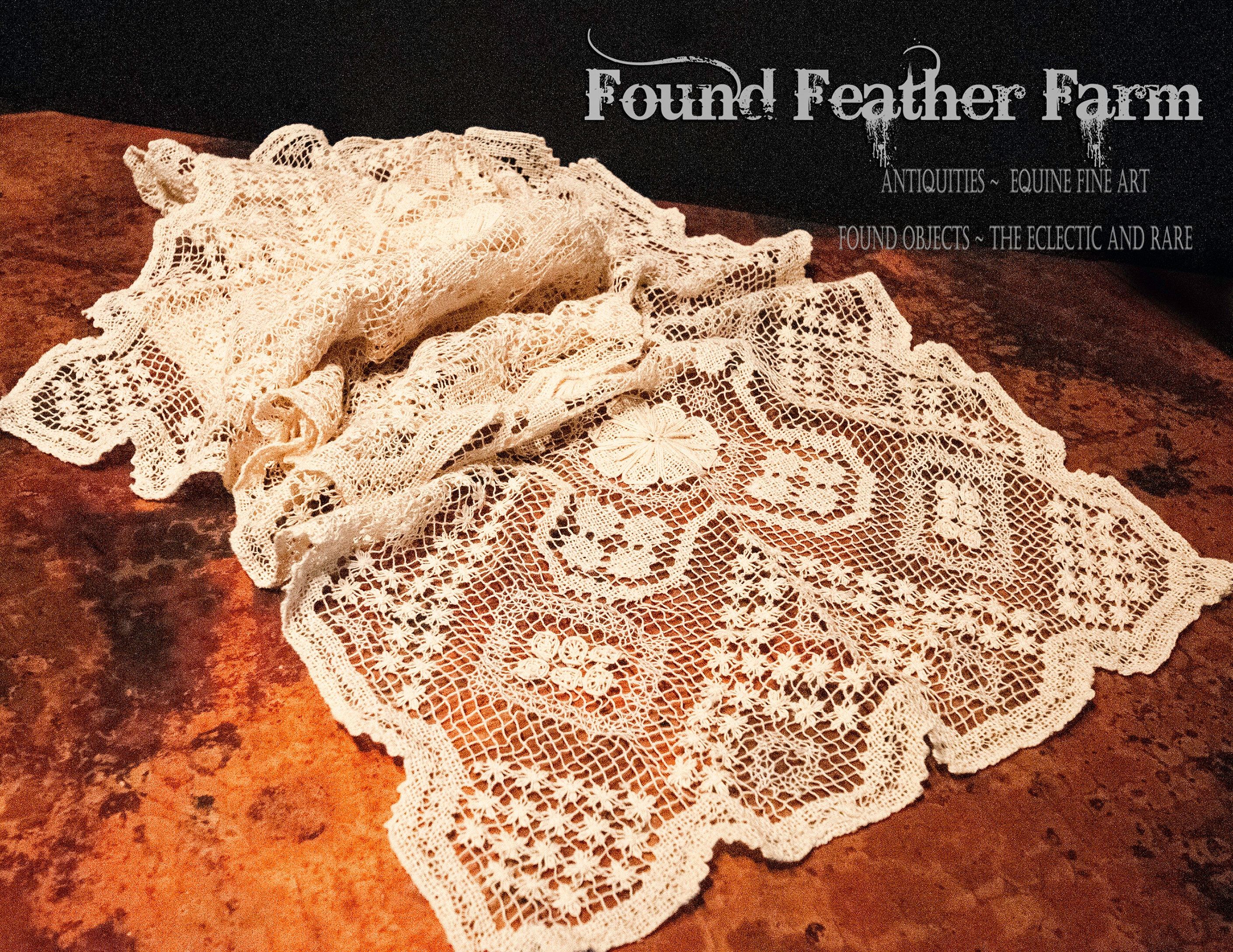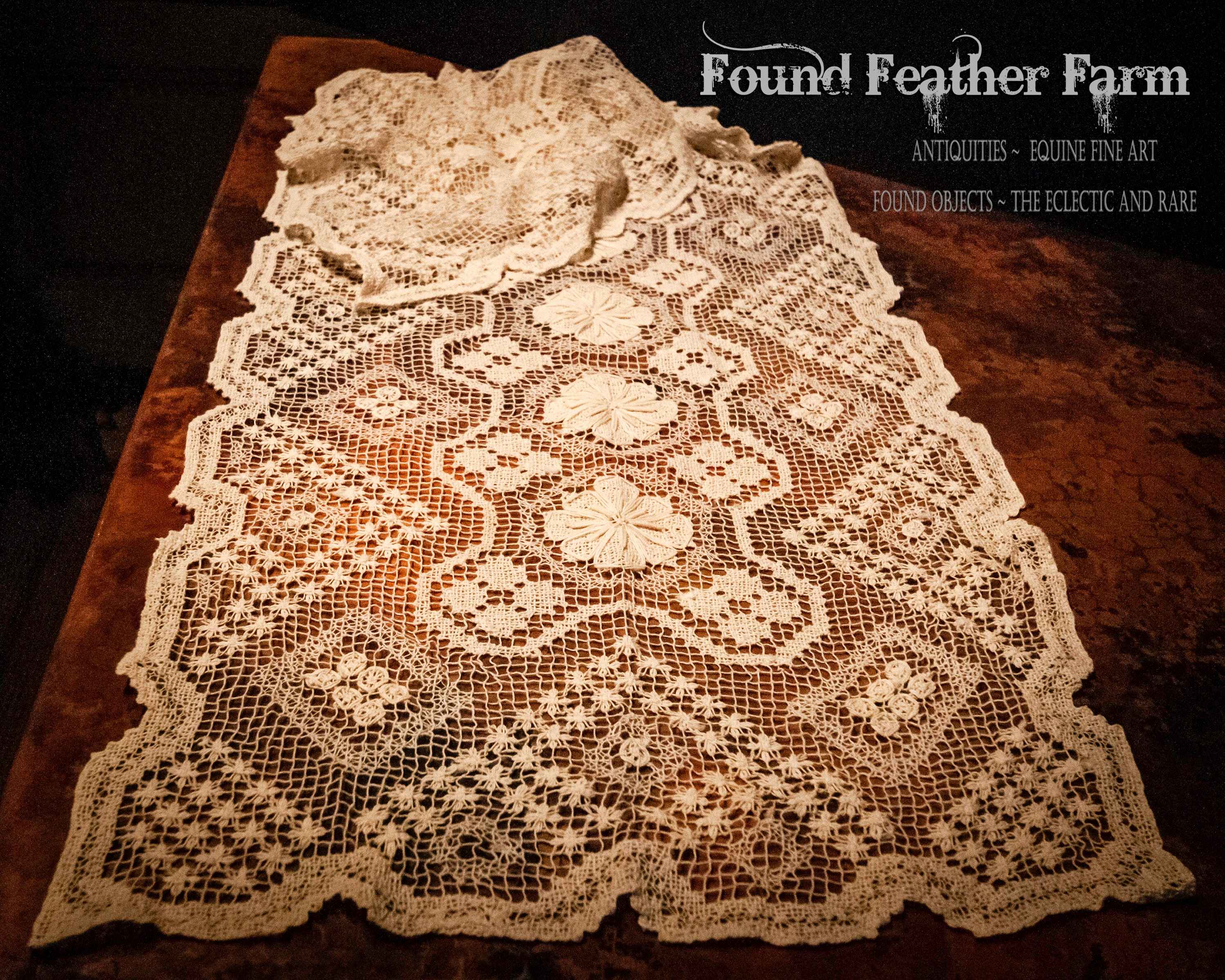 We can think of several clever uses for this lace. Gorgeous down a table. Could be used as a shawl or for a backdrop for jewelry or accessories.