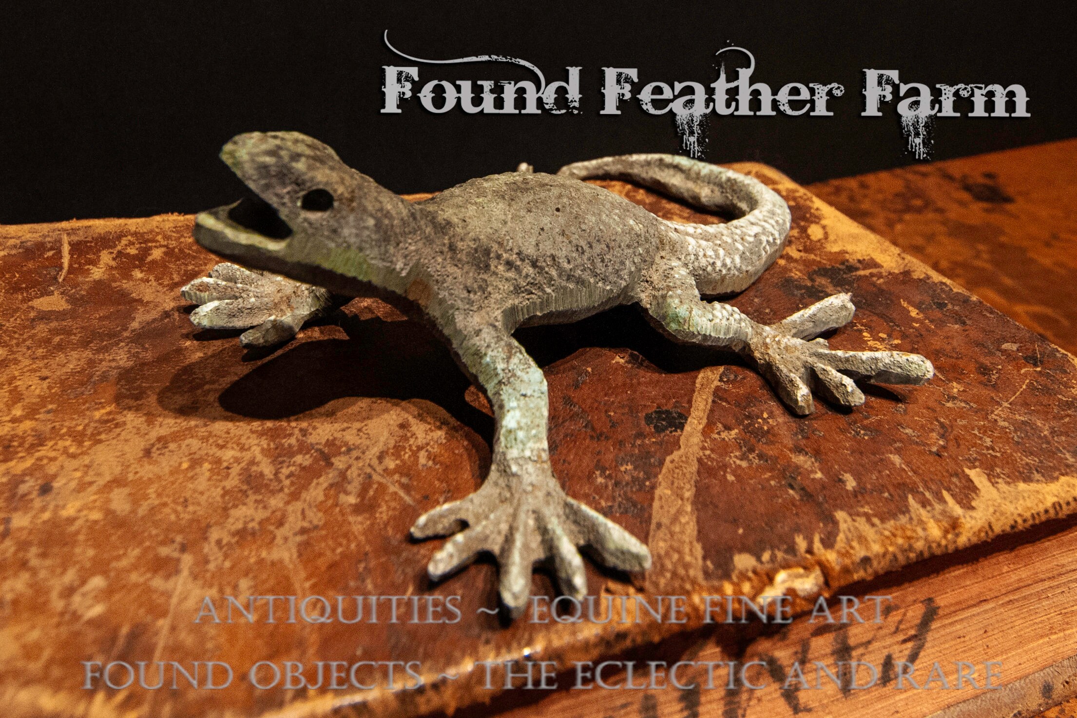 Vintage handmade solid bronze lizard paperweight or statue. This lizard has a lovely oxidized green patina that