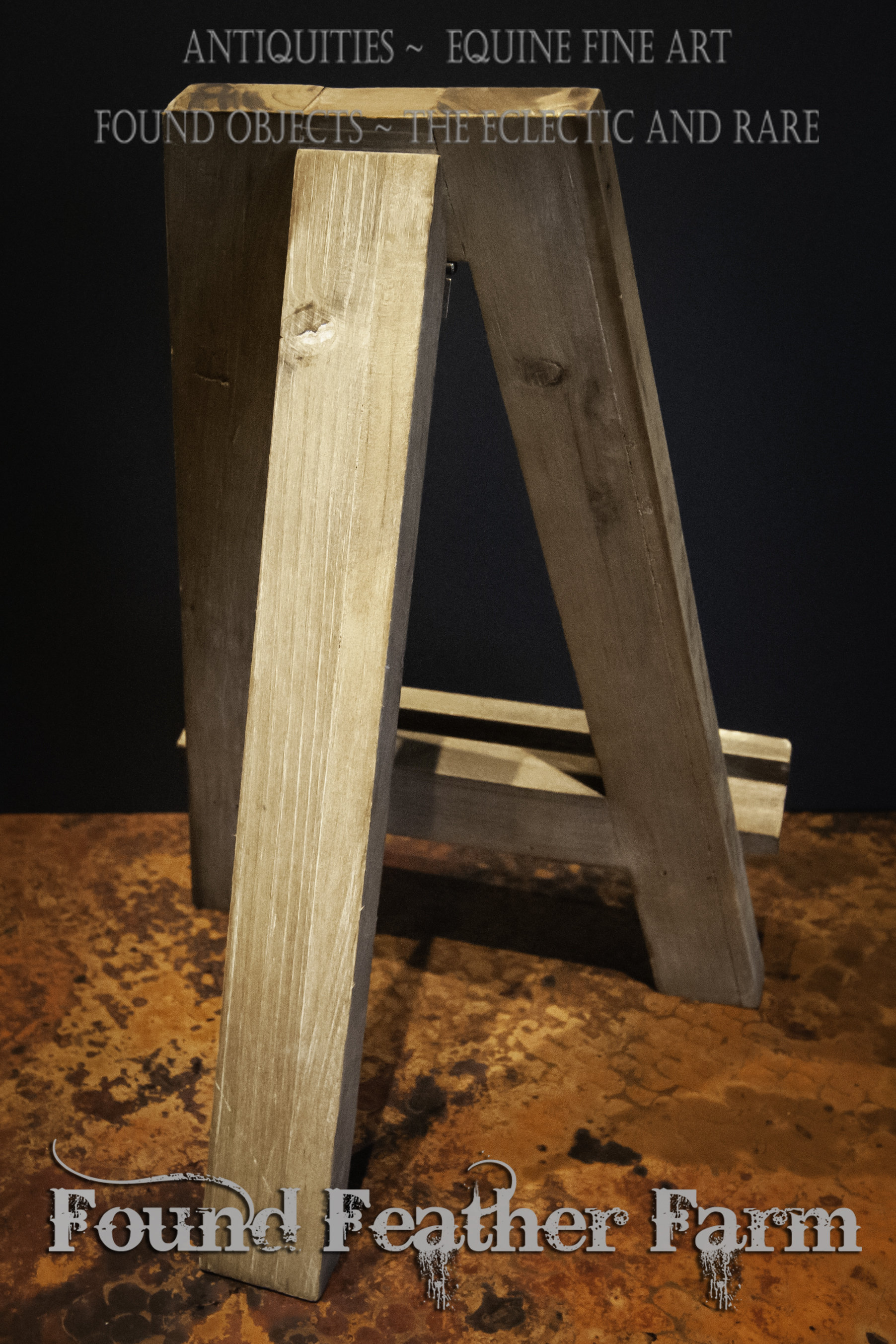 A clever handmade wooden easel that is perfect for displaying art or signs or even to be used at a wedding table.